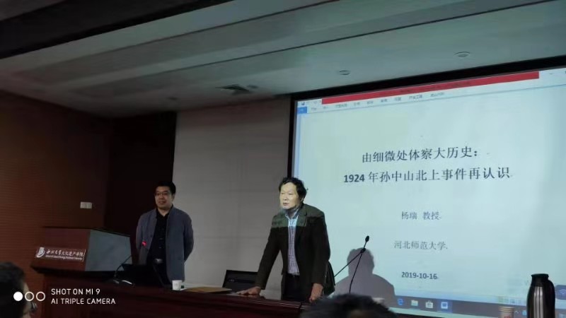 10月16日下午,河北师范大学历史文化学院杨瑞教授应邀做客我校“名家讲坛”,在太白校区博望报告厅为我校师生做《由细微处体察大历史-1924年孙中山北上事件再认识》专题讲座。讲座由776net必赢官网院长陈峰教授主持,中国近代史教研室的教师及各专业研究生、本科生到场聆听。