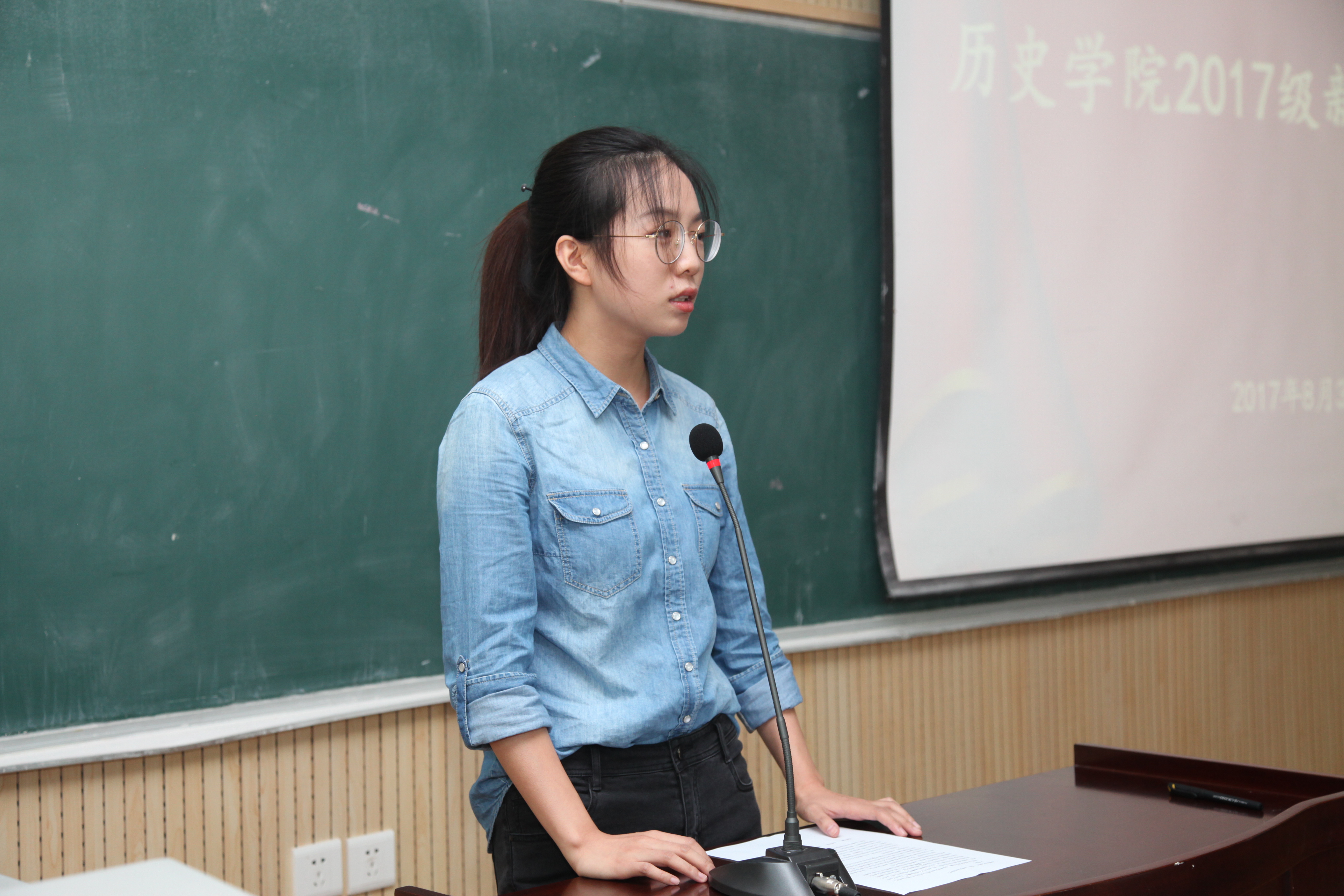 2017级研究生马婧同学、2017级本科生徐乐珊同学分别代表研究生和本科生发言。她们的发言在新生中引起共鸣,新生们纷纷表示将以积极的态度面对未来的学习和生活,不断追求更高的目标,力争上游、不负青春、不负时代、勇攀高峰。