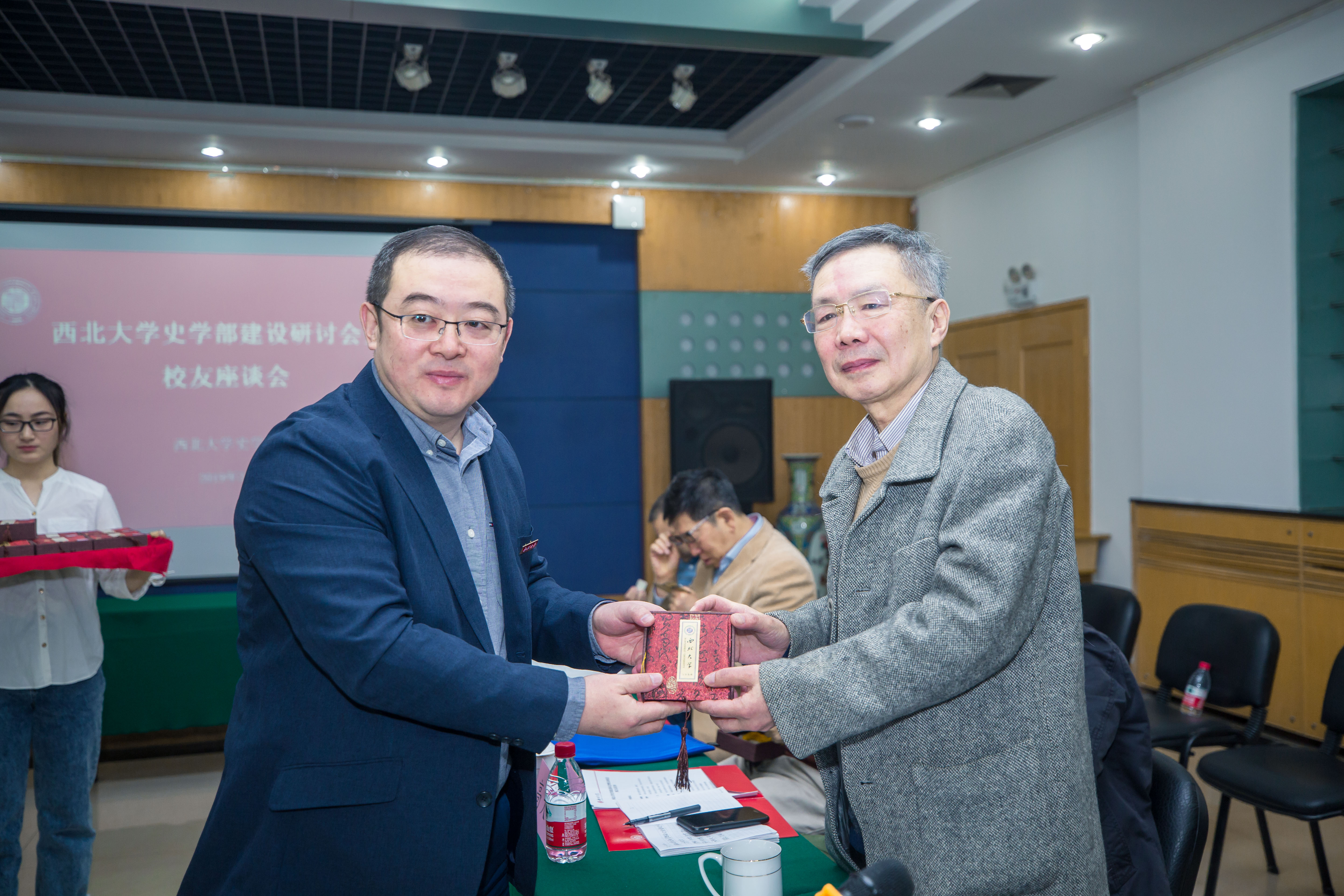常江副校长代表学校向每名专家校友赠送了蓝田玉印纪念品,表达了母校对校友的深厚情谊和真挚祝福。