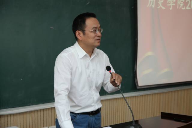 776net必赢官网院长陈峰教授致辞。陈院长期望同学们以“修齐治平”为人生目标,对同学们提出了“兴趣”和“坚持”两个学习历史的关键词,希望同学们在学习过程中发掘学习兴趣、保持学习热情、坚持大量阅读、执著探源求索,努力成就自身、报效国家和社会。