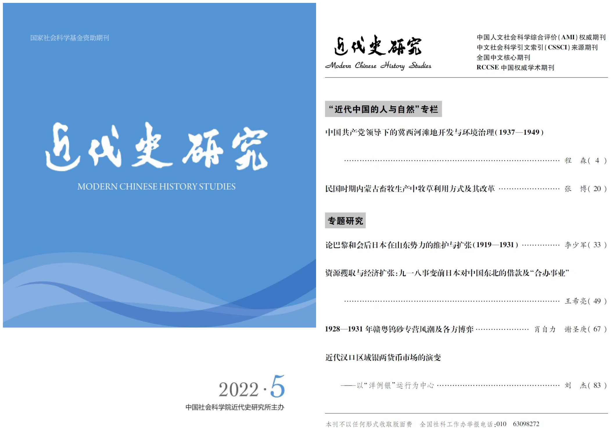 近日,我院青年教师张博在《近代史研究》2022年第5期上发表了专题论文《民国时期内蒙古畜牧生产中牧草利用方式及改革》。